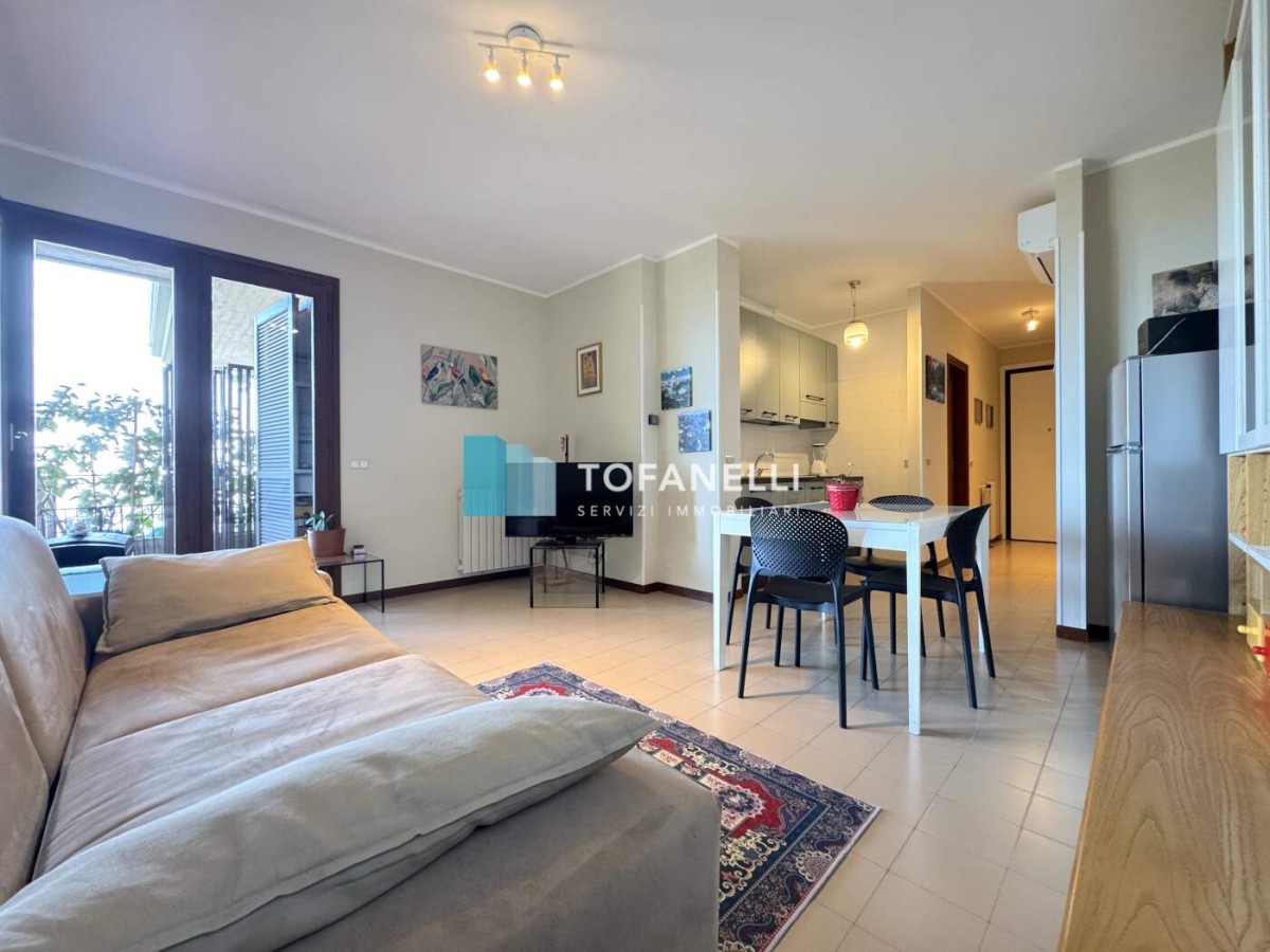 L’appartamento, situato al piano terra, si sviluppa con una luminosa zona living open space con cucina a vista e accesso diretto alla terrazza privata dalla quale si può ammirare una piacevole vista lago. La zona notte comprende una camera matrimoniale e un bagno finestrato servito da box doccia e attacco per la lavatrice.